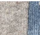 ふんわり肌触りがよく、伸びやかで大変気心地の良い素材。凹凸感のあるブークレタイプの糸で、春まで長く着られる淡い優しい杢調の色を取り揃えました。すっきりとしたVネックの開きでリブ編みが特徴。お尻が隠れる丈です。(前立ての裏に配色)