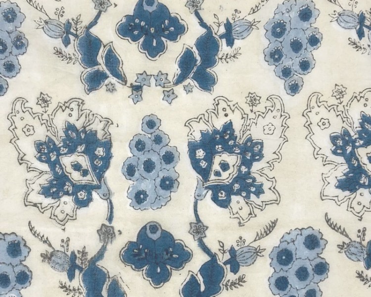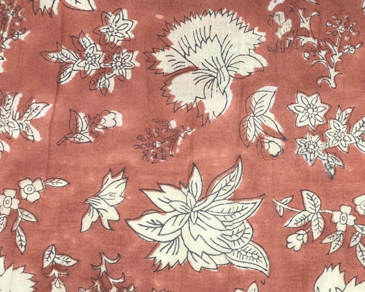 【ブロックプリント】インドらしい大ぶりの花のデザインで、華やかな雰囲気に。長すぎない丈や袖ゴムで動きやすさもある袖をたくしあげて、ふんわり袖にしても◎。