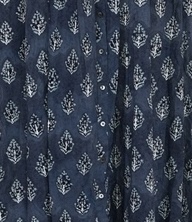 【ブロックプリント】木のモチーフをベーシックな小紋柄にしました。ブロックプリントの味わいをダイレクトに感じられるシンプルなデザインです。身幅の広いゆったりとしたシルエットで羽織としても使えます。