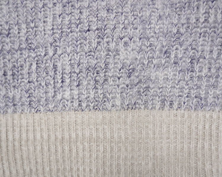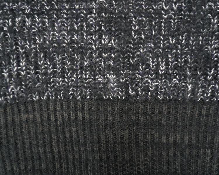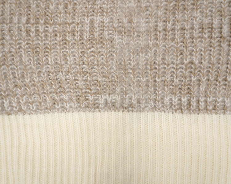 ゆったりとしたシンプルな形のカーディガン。片畦編みでより糸のミックス感が楽しめる一枚。配色のリブがポイントのデザインです。