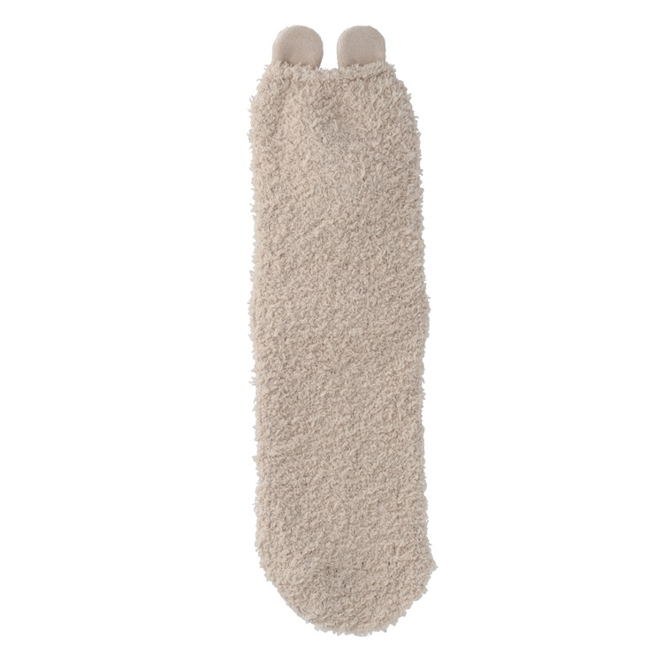 後ろにクマの可愛いしっぽが付いたもこもこルームソックス。しっぽを見せる帯付きでギフトにもおすすめです。