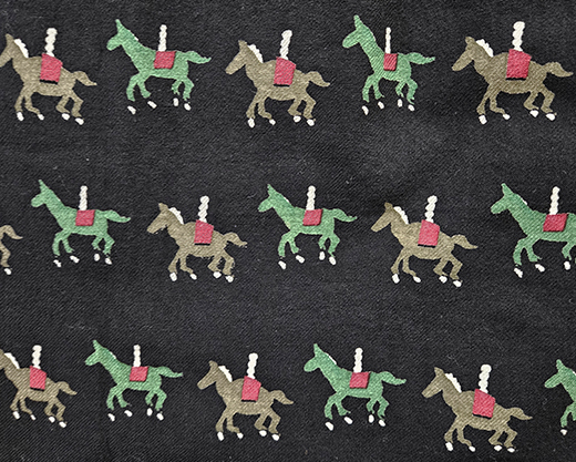 メリーゴーラウンドの馬を並べたユニークな柄です。ポイントカラーがアクセントに。小さい柄で。コーディネイトに取り入れやすいです。