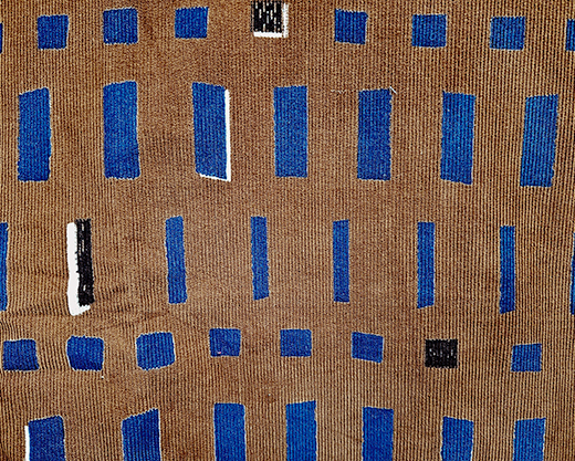 大中小の□を並べた幾何学柄。効かせカラーがテンポよく配置されて、モダンな印象に