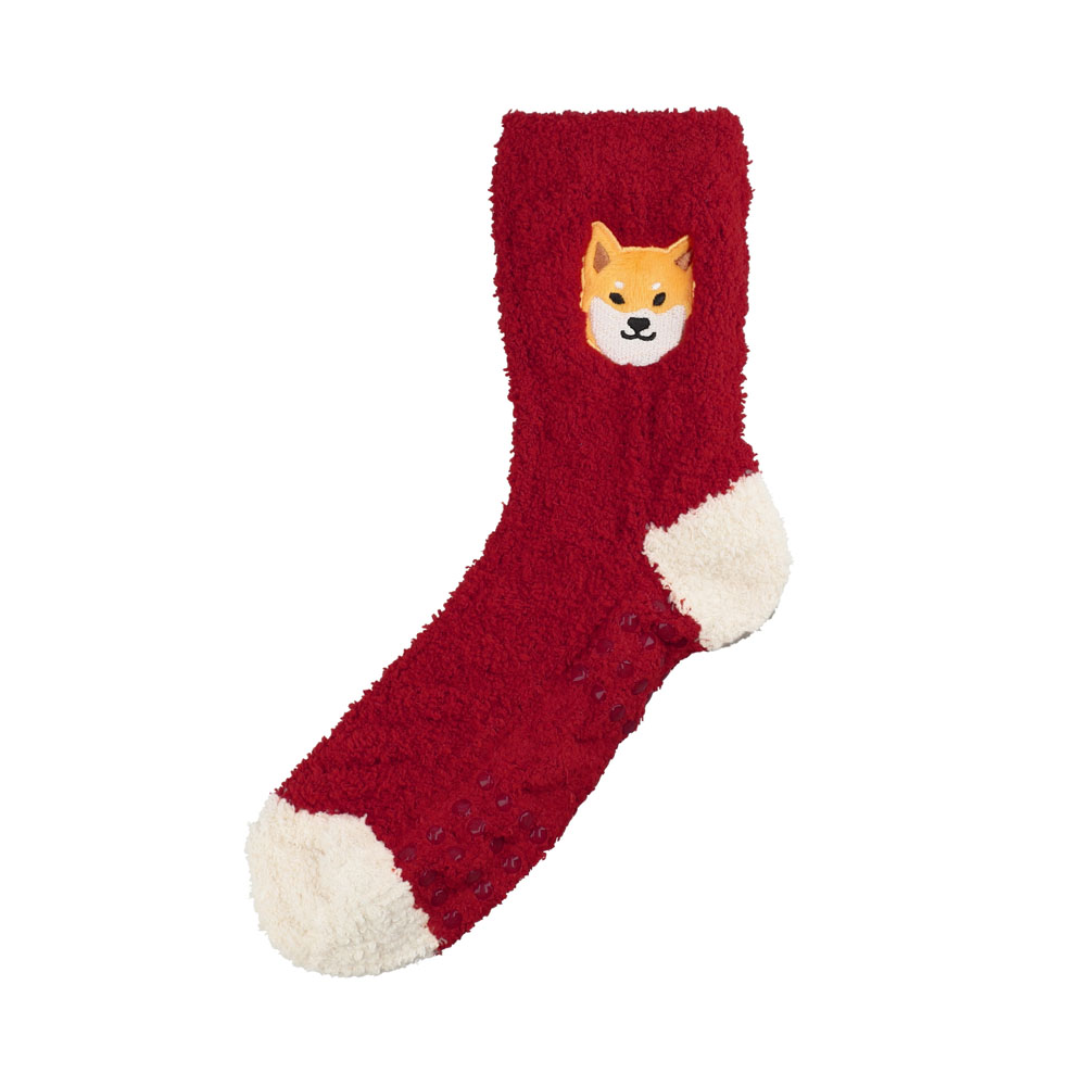 かわいいアップリケで気分が上がる、ぽかぽかアイテムです。足裏に滑り止め付いているのでスリッパなしの室内でも安心。