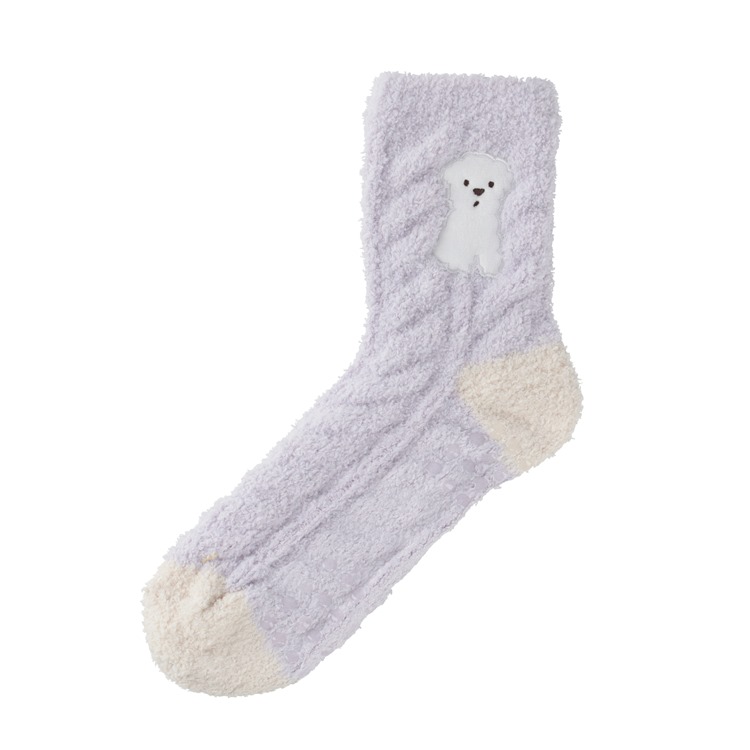 かわいいアップリケで気分が上がる、ぽかぽかアイテムです。足裏に滑り止め付いているのでスリッパなしの室内でも安心。