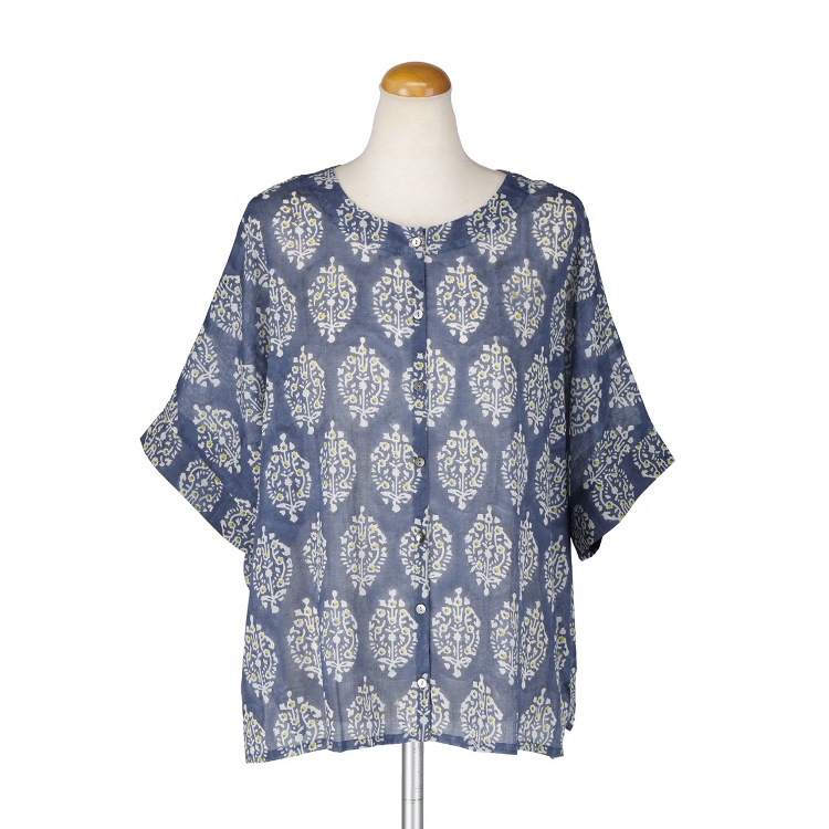 S4721クラッチブーケ2WAYプルオーバークラッチブーケをイメージしたモチーフを整然と並べて、すっきりしたデザインに仕上げました。身幅にゆとりを持たせた、シンプルな形のプルオーバー。色々なボトムと合わせやすい丈感です。前後で2way で着られます。