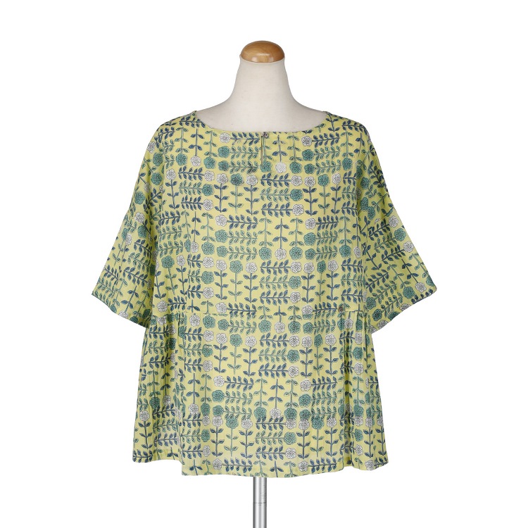 S4714クミハナライト2WAYプルオーバー上下左右と、整然と並んだ花の柄。リトルマーケットの定番人気のデザインを春夏にもお届けします。後ろのボタンをつけ外しして、スッキリとふんわりのシルエットを調整できます。
