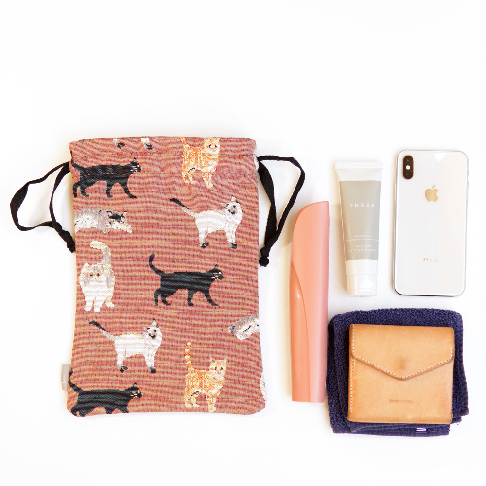 細かなアイテムをまとめて持ち歩ける巾着袋。