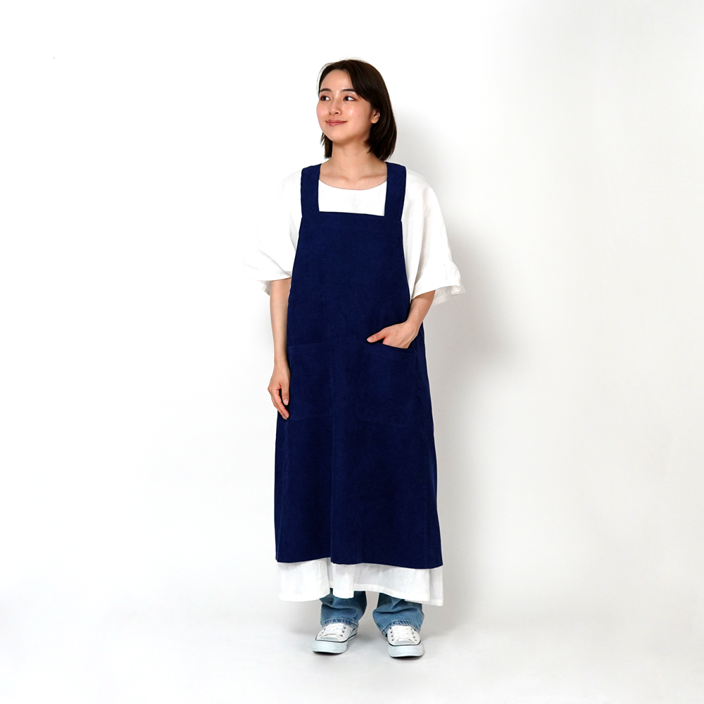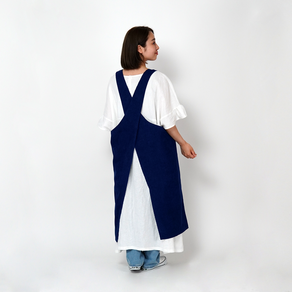 さっと着脱しやすい、カジュアルなバッククロスタイプのタブリエです。肩紐が太いので肩の疲れも軽減します。