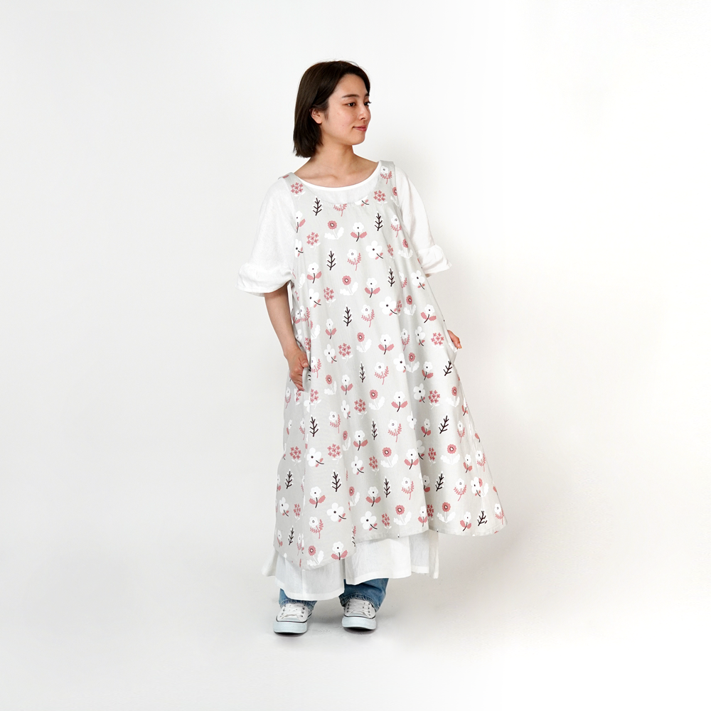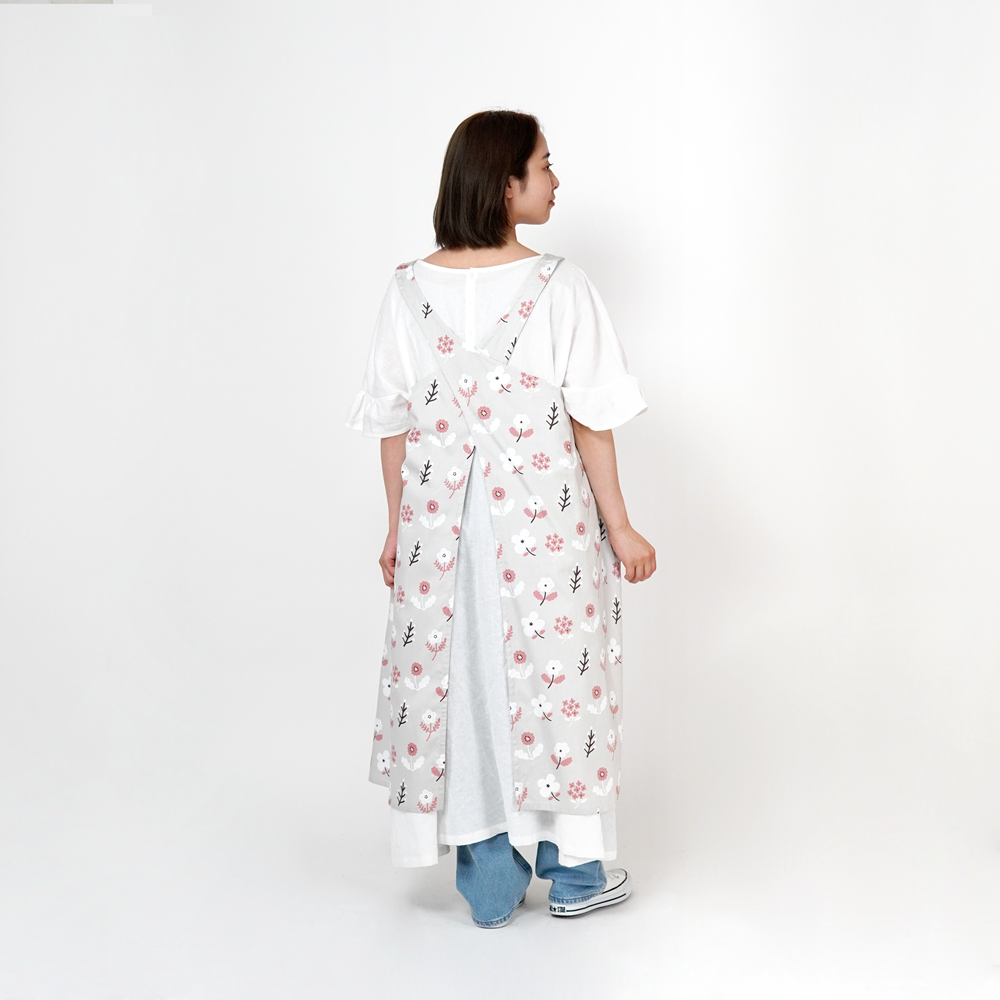 ワンピース感覚のフレアシルエットが特徴。簡単に着脱できるおしゃれなエプロンです。