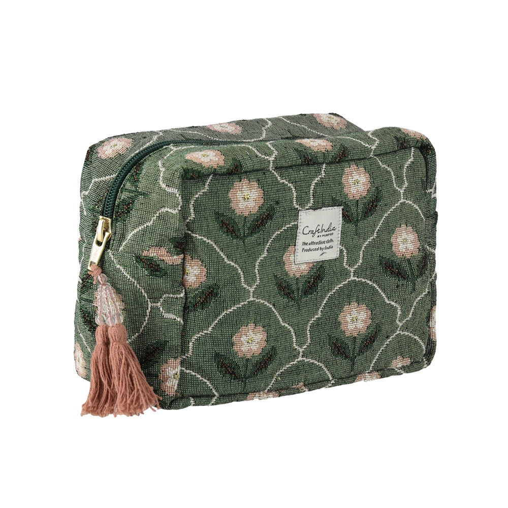 ジャカード素材ならではの存在感でおしゃれに。コスメはもちろん旅行小物の整理にも活躍します。