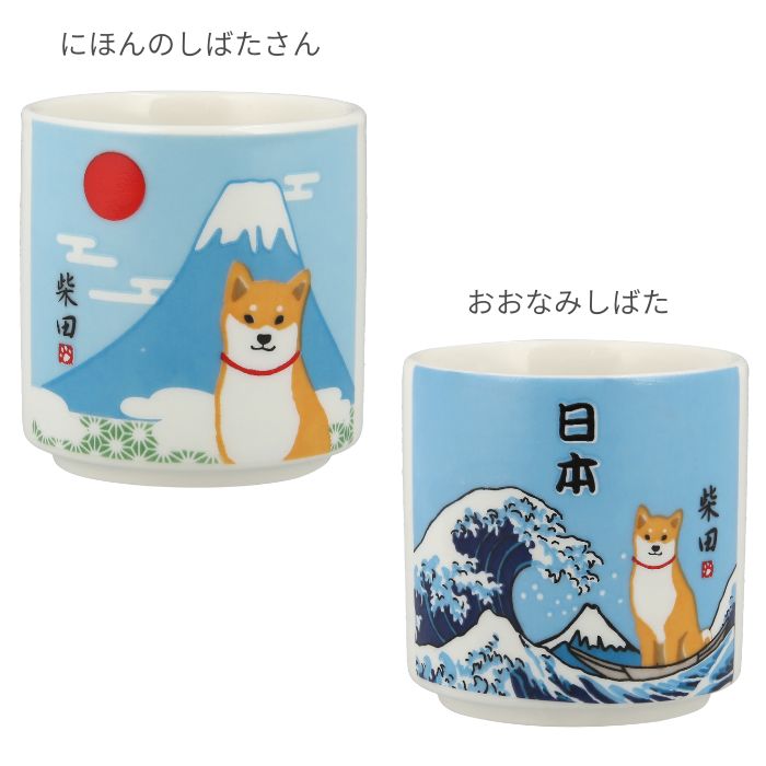 愛らしい柴犬「柴田さん」と「招き猫」をモチーフにした陶器製のおちょこ。
