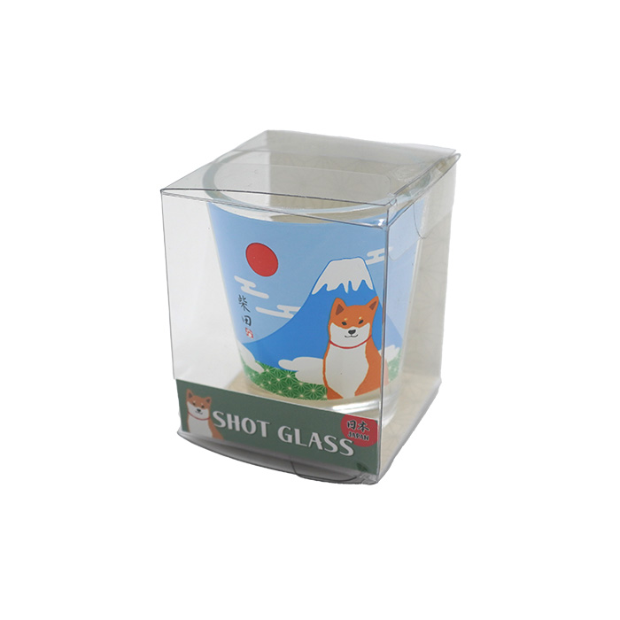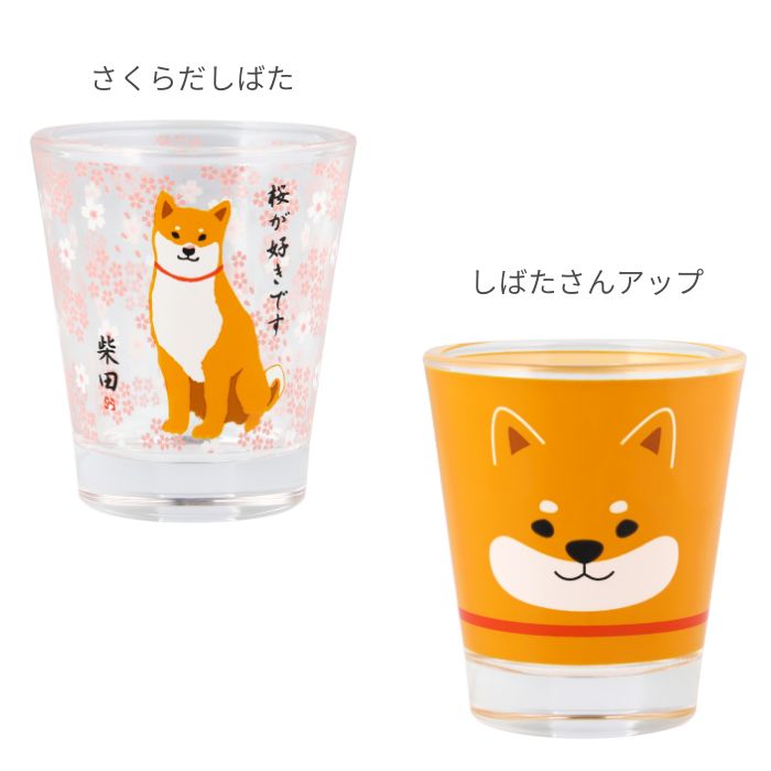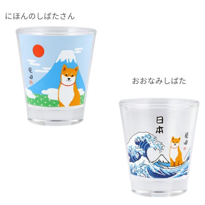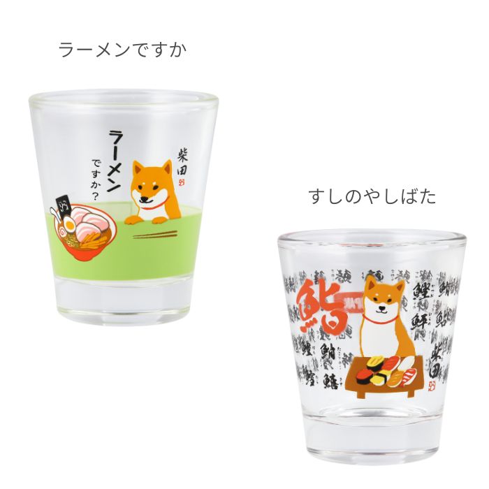 人気の柴犬「柴田さん」と福を招く「招き猫」をプリントしたガラス製ショットグラス。