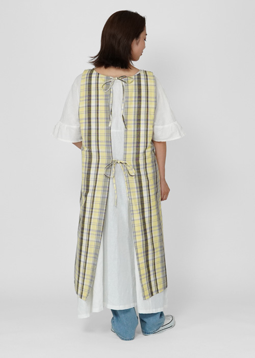 華奢なリボンが上品な印象のチェック柄タブリエエプロンです。