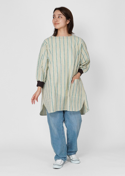 ストリートストライプ 花びらリブ袖かっぽうぎ