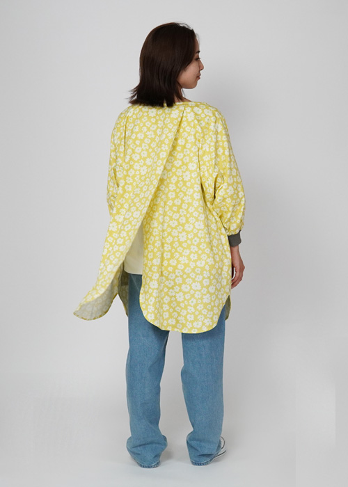 後ろスリットが花びらのように可愛らしい、チュニック感覚のかっぽうぎです。