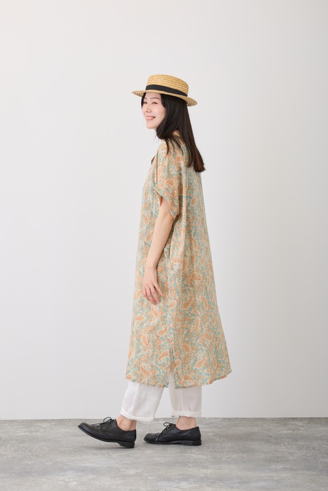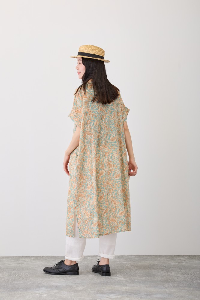 ペイズリー 半袖前開きワンピース