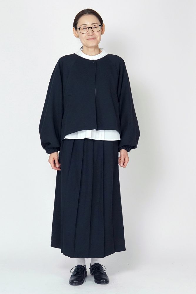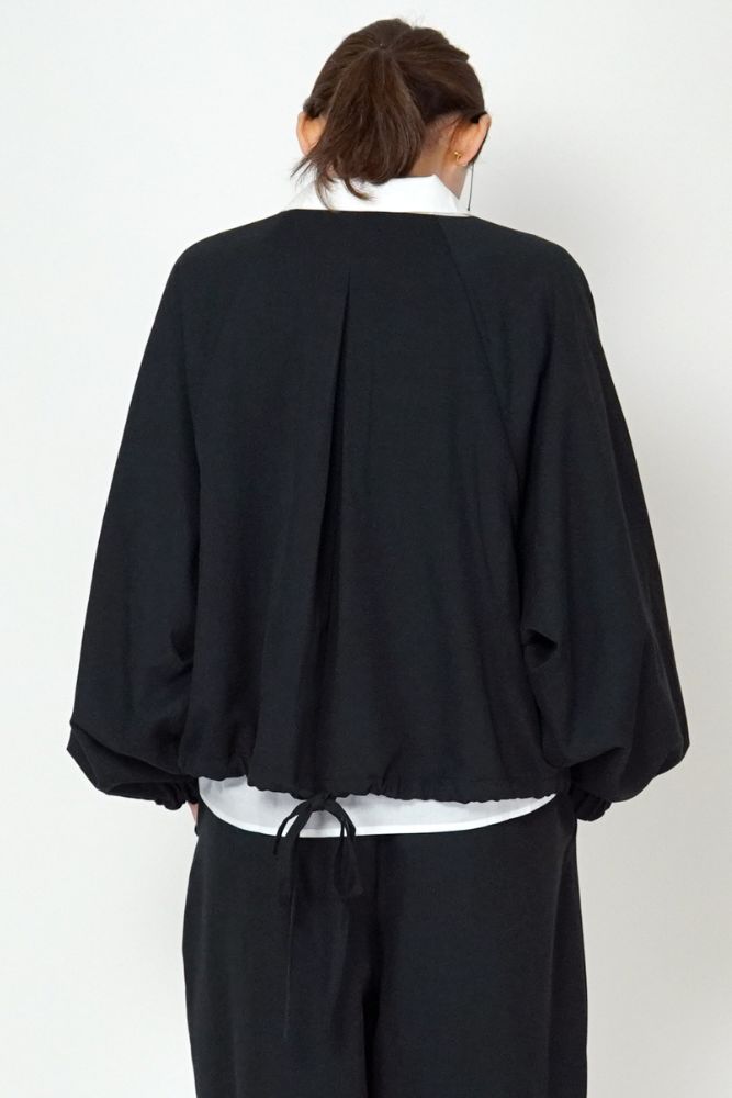 ラグランの袖でゆったりと、ドレープの美しいジャケットです。