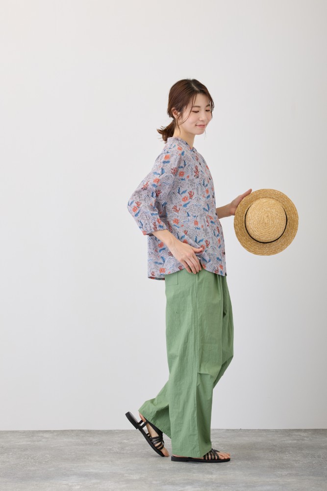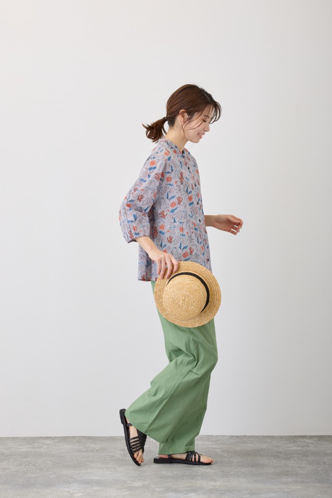 | 注意事項 | 汗や摩擦(特に濡れた状態)により色落ち、もしくは他の製品に移染することがありますのでご注意ください。 染色の性質上、多少色落ちがありますので、単独で洗ってください。 漂白剤入りの洗剤の使用、浸け置き洗いは避けてください。 素材の特性上、洗濯後多少の縮みがあります。 洗濯後は形を整えてすぐに陰干ししてください。 タンブラー乾燥は縮みの原因となりますのでお避けください。 直射日光や蛍光灯の長時間照射により色あせすることがあります。 |