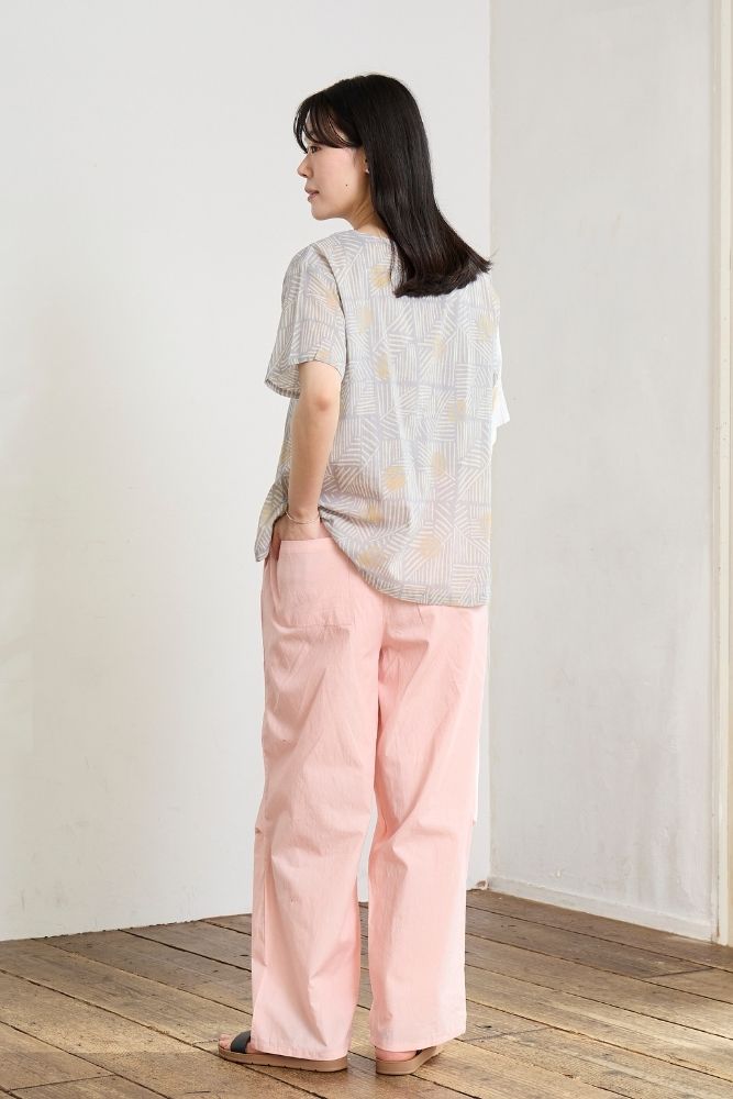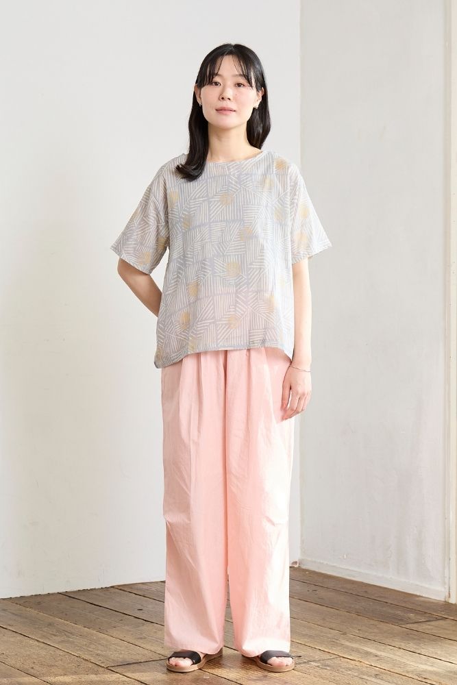 | 注意事項 | 汗や摩擦(特に濡れた状態)により色落ち、もしくは他の製品に移染することがありますのでご注意ください。 染色の性質上、多少色落ちがありますので、単独で洗ってください。 漂白剤入りの洗剤の使用、浸け置き洗いは避けてください。 素材の特性上、洗濯後多少の縮みがあります。 洗濯後は形を整えてすぐに陰干ししてください。 タンブラー乾燥は縮みの原因となりますのでお避けください。 直射日光や蛍光灯の長時間照射により色あせすることがあります。 |