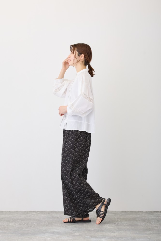 ウエストゴム仕様で、内側紐で調整可能。