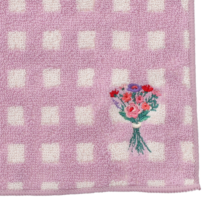 かわいらしいワンポイント刺繍が映える、綿100%のタオルハンカチです。