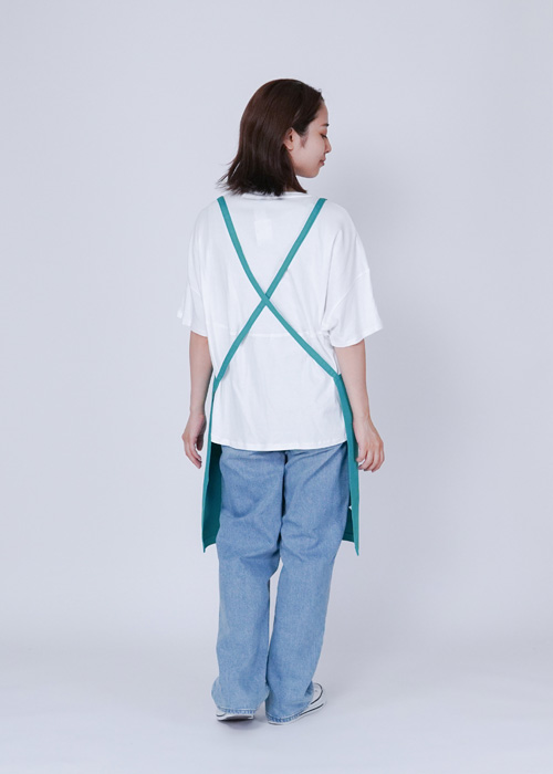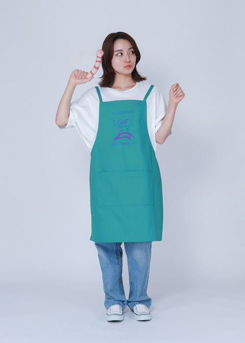 遊び心のあるメッセージデザインが目を引く、ショート丈エプロン。