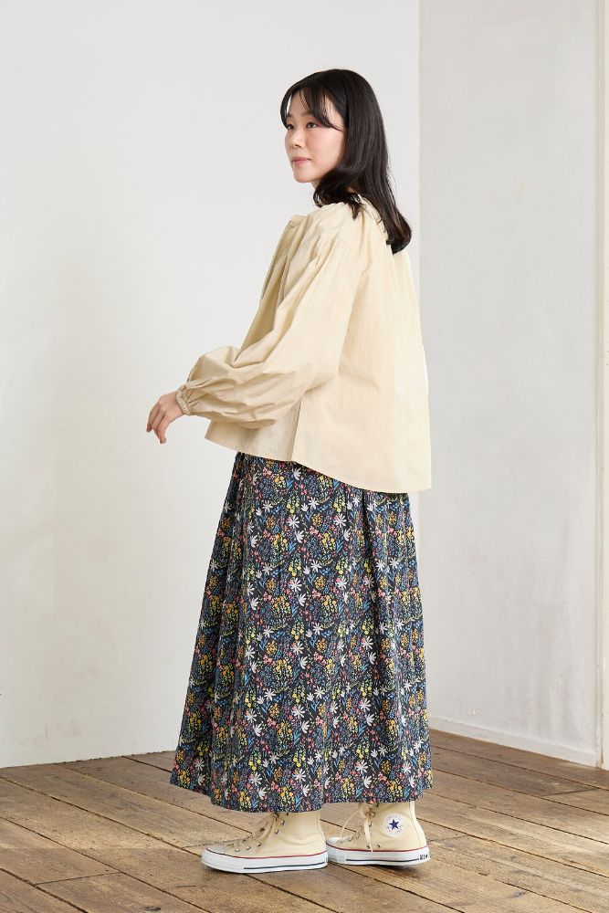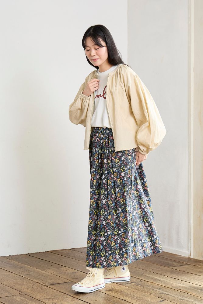 ボリュームをつけた袖がおしゃれで簡単にバランスよく着こなせます。