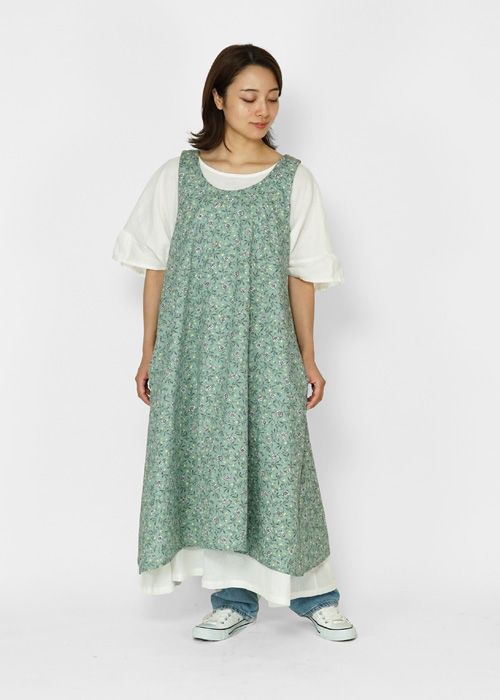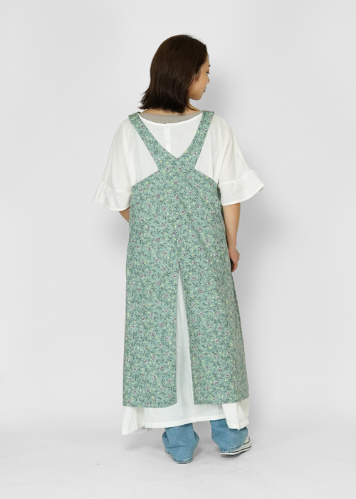 ワンピース感覚のフレアシルエットが特徴。簡単に着脱できるおしゃれなエプロンです。
