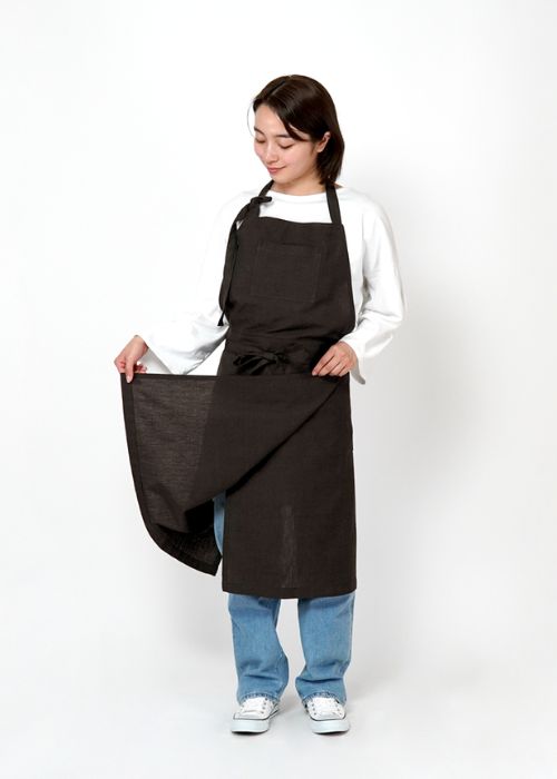 フロント部分が二重になっているので、水や汚れが衣服まで染み込みにくいエプロン。少し濡れた手を拭くのも◎