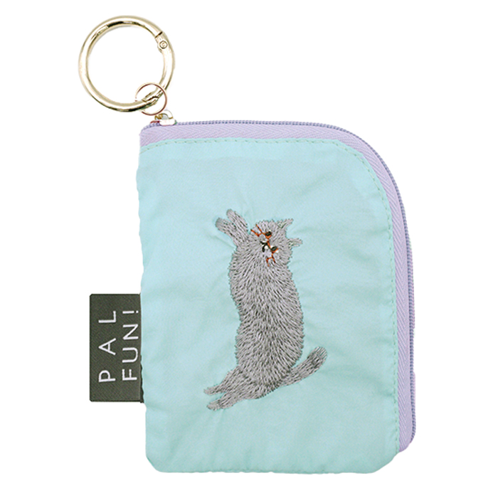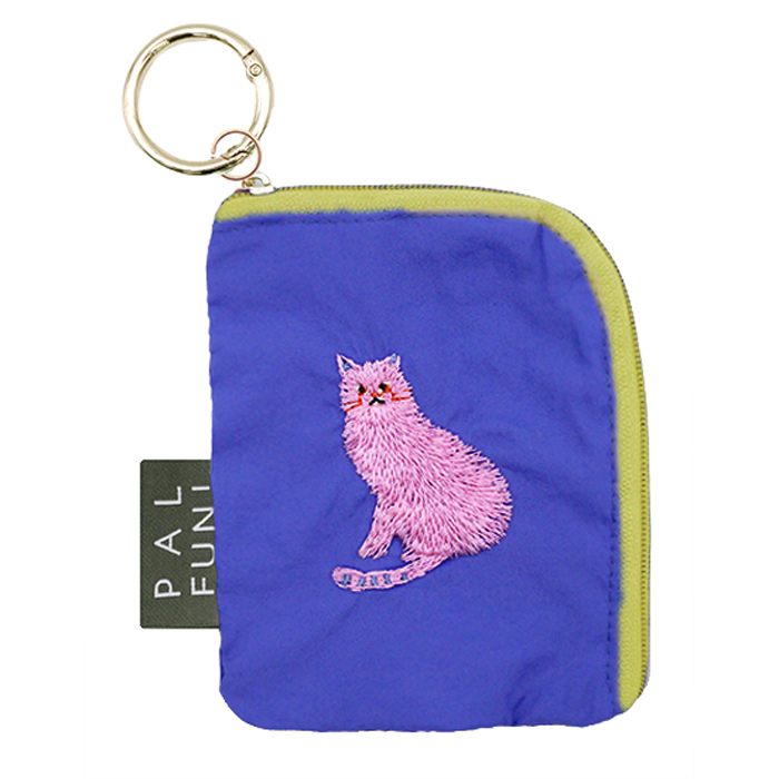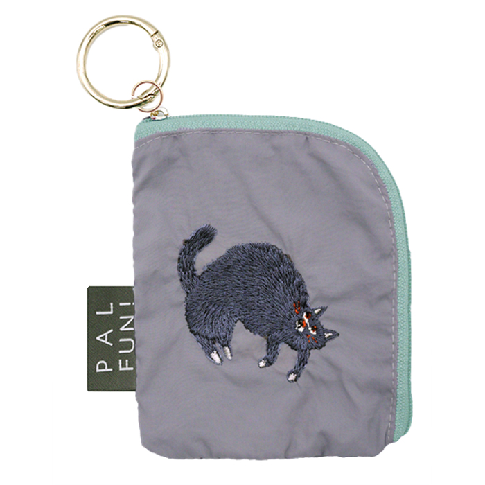 本体とポーチの両方に猫の刺繍を施し、持つだけで気分が上がるデザイン。