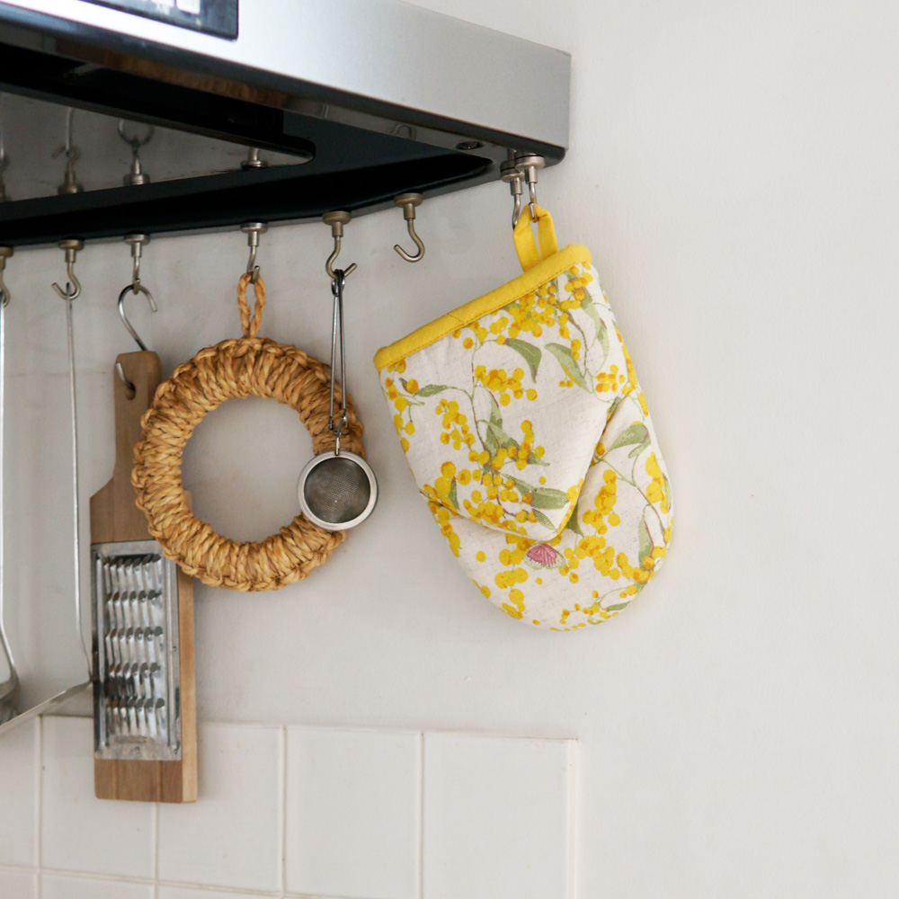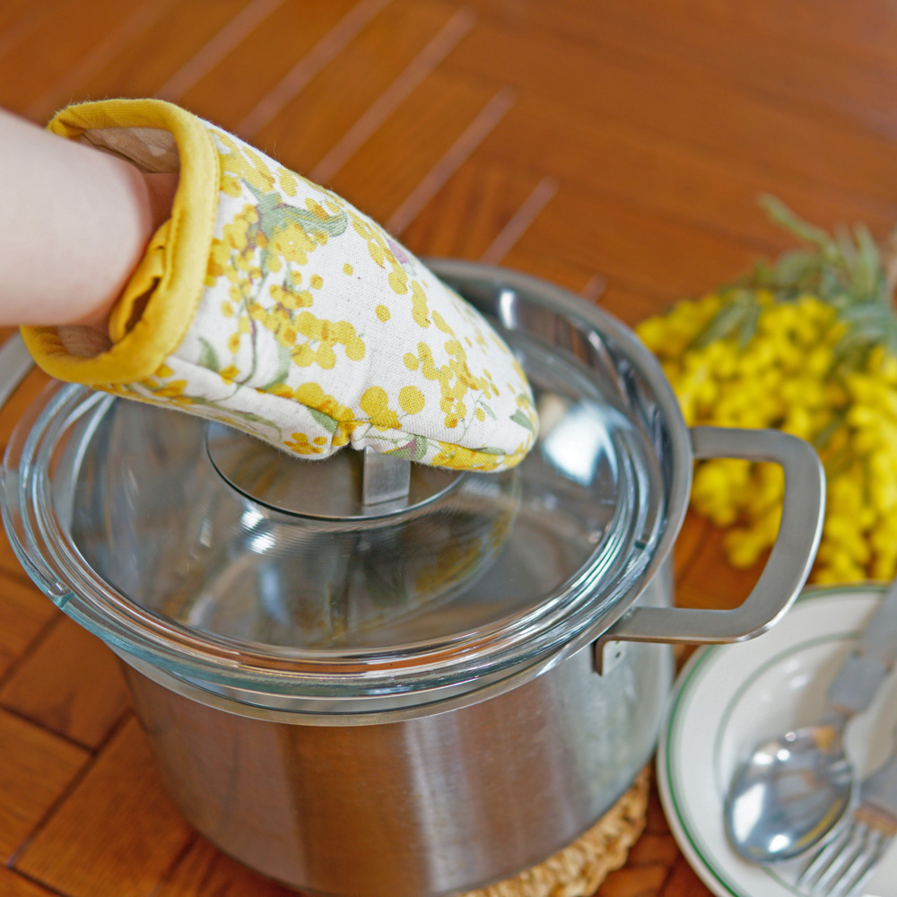 花柄のショートミトンは、手元をかわいく彩りながら日常の調理や家事をサポート。