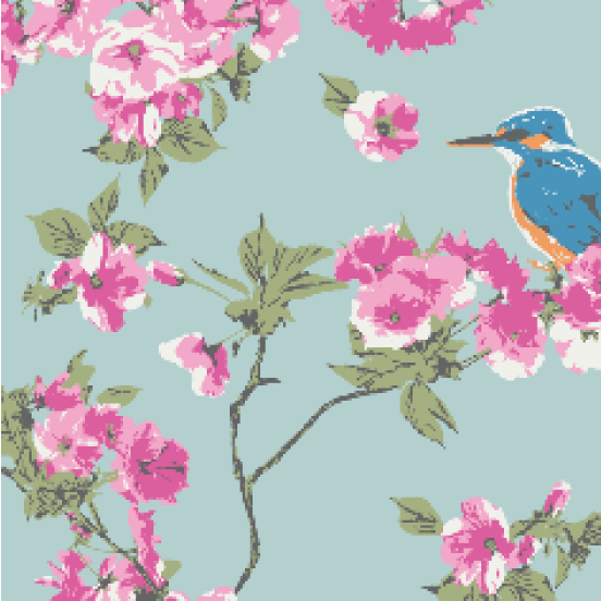 華やかな花柄デザインで、空間の入口や仕切りに彩りを添えるノレンです。
