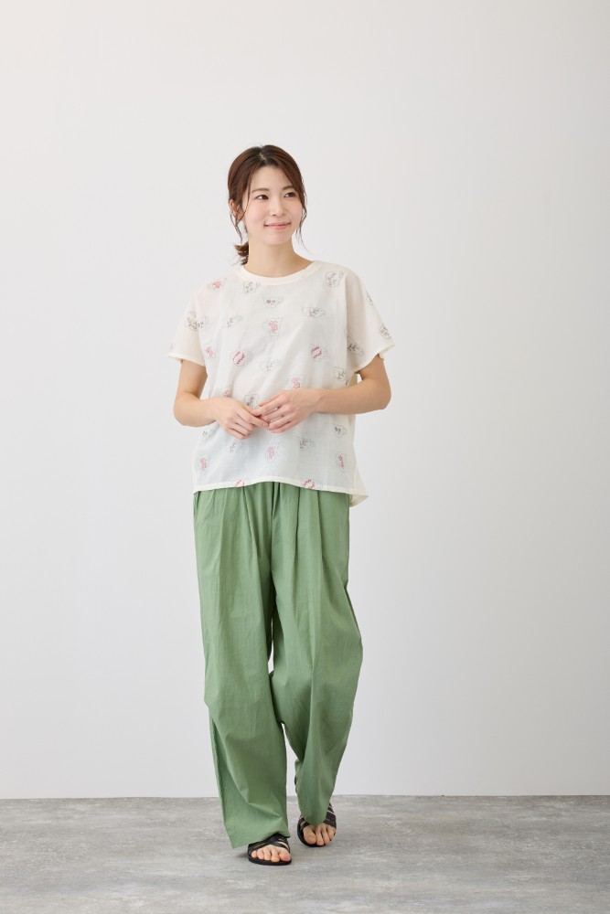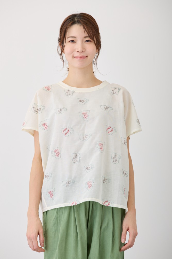 前面は同色の立体刺繍生地で上品な華やかさ。