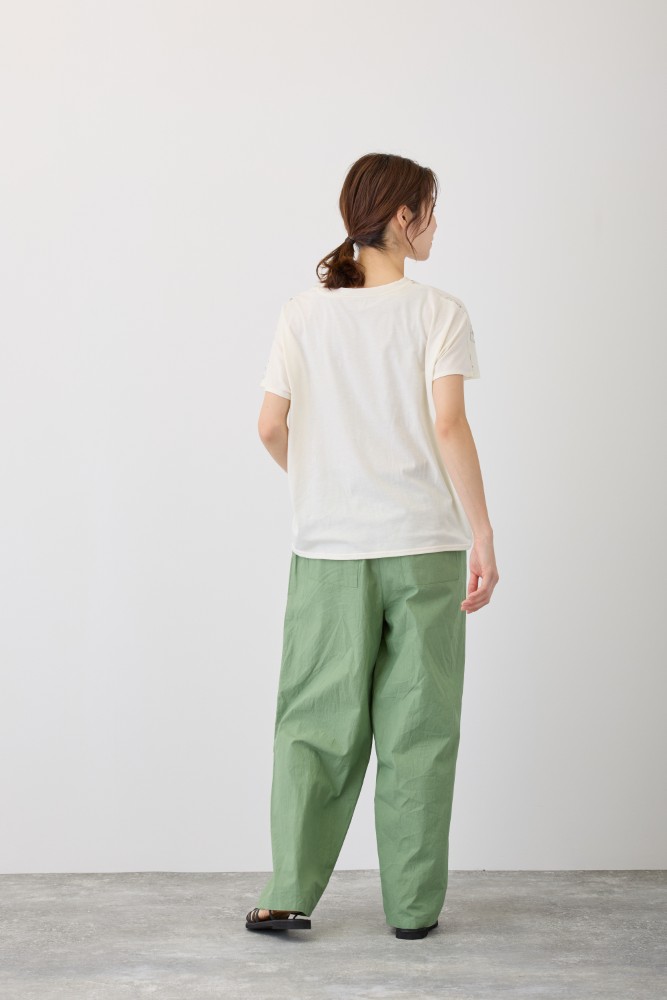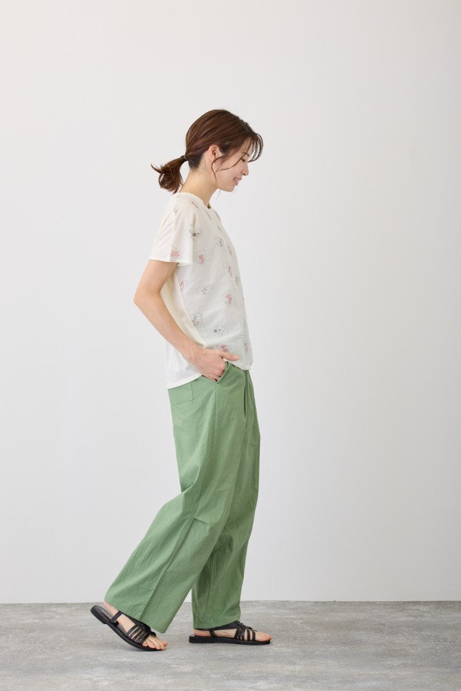 | 注意事項 | 汗や摩擦(特に濡れた状態)により色落ち、もしくは他の製品に移染することがありますのでご注意ください。 染色の性質上、多少色落ちがありますので、単独で洗ってください。 漂白剤入りの洗剤の使用、浸け置き洗いは避けてください。 素材の特性上、洗濯後多少の縮みがあります。 洗濯後は形を整えてすぐに陰干ししてください。 タンブラー乾燥は縮みの原因となりますのでお避けください。 直射日光や蛍光灯の長時間照射により色あせすることがあります。 |