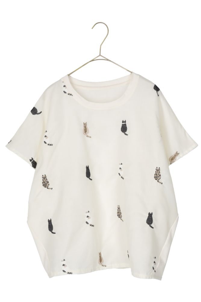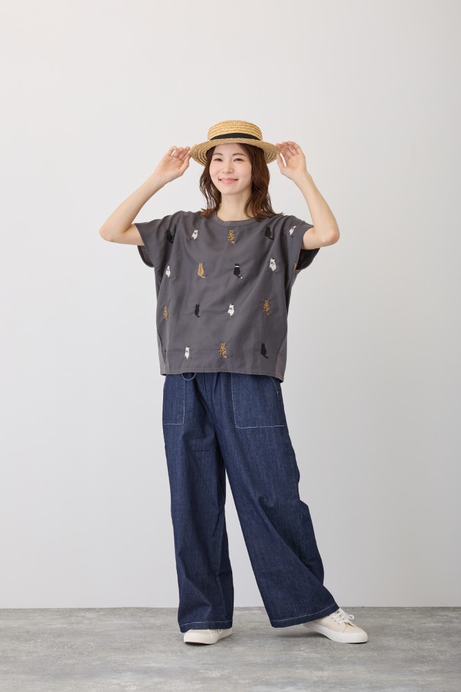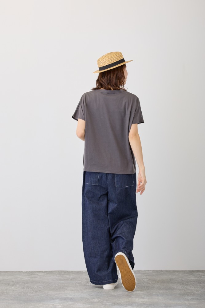 背面は無地カットソー切替えで動きやすく、きちんと感と快適さを両立した一枚です。