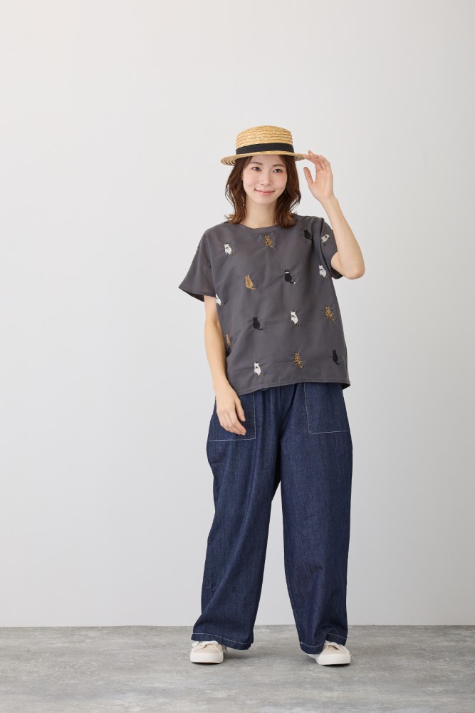 前面は程よい張りのある生地に表情豊かな刺繍。