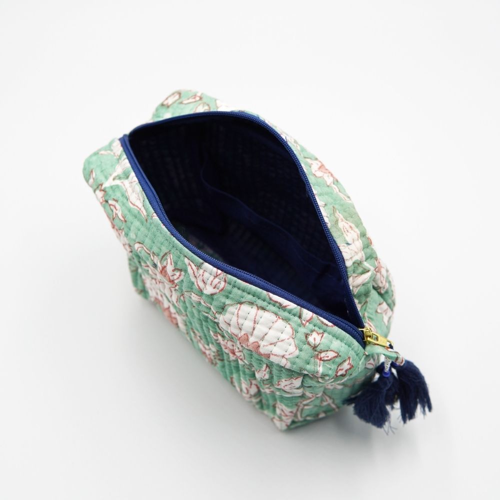 ブロックプリントという、木版を使ってインドの職人さんが一つ一つ色を重ねてプリントする技法で作られています。