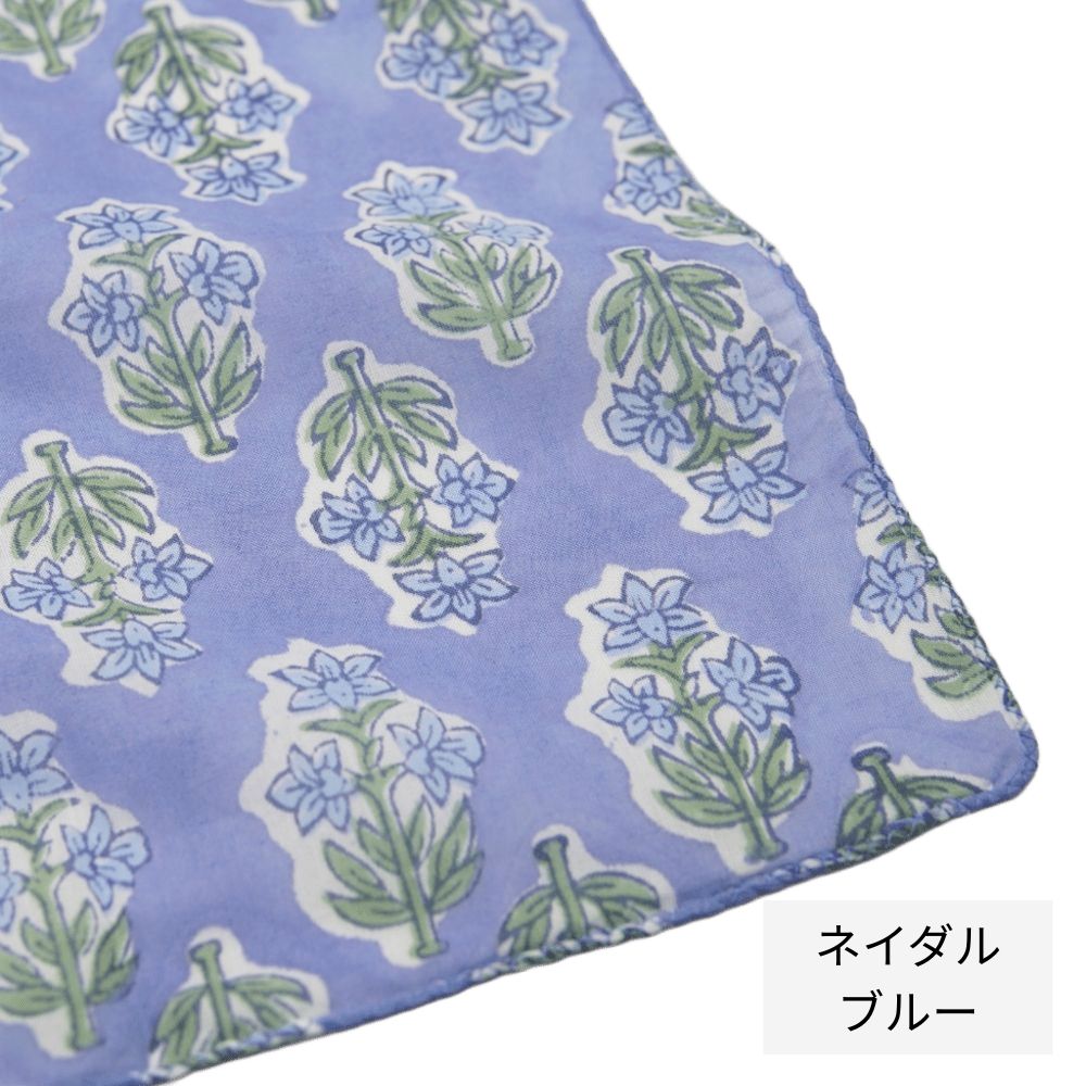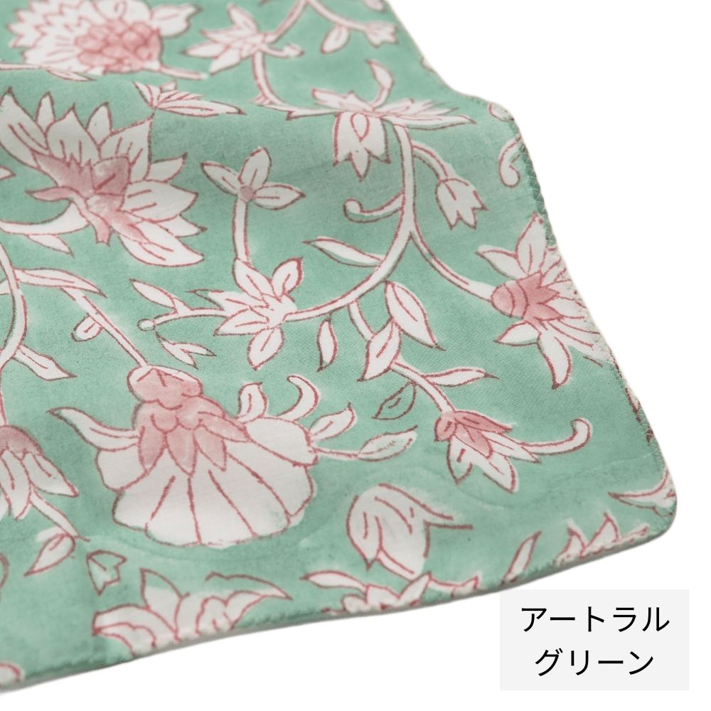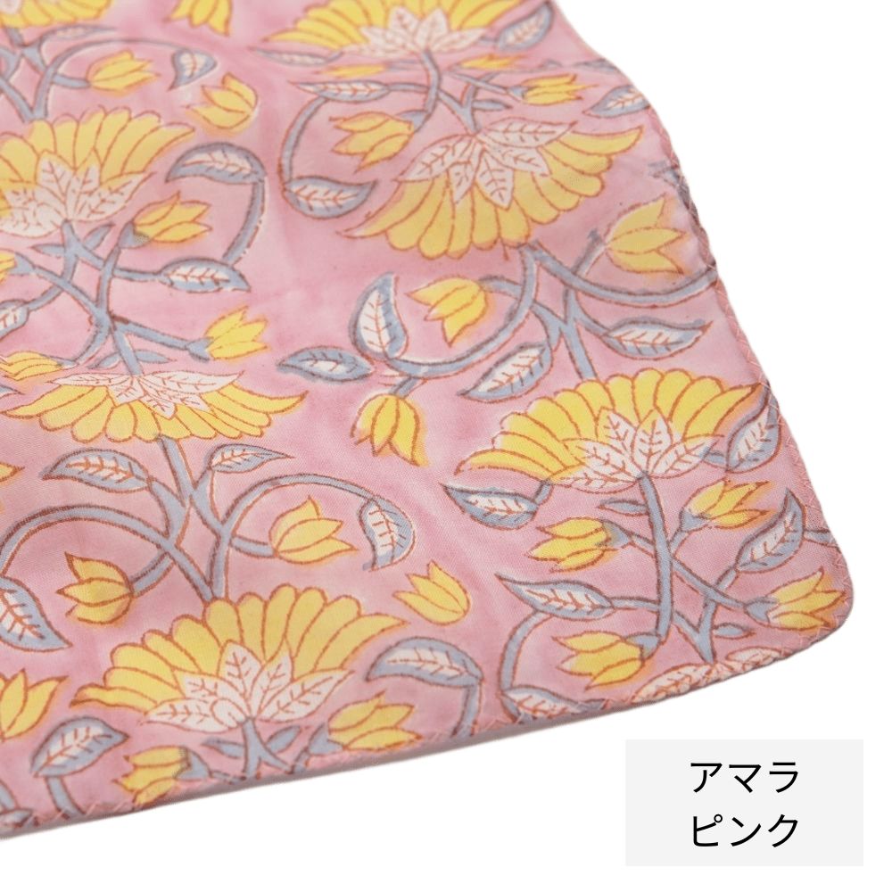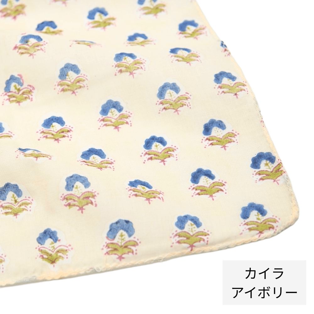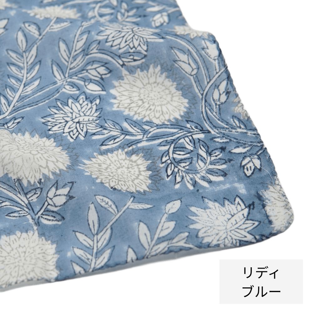 ブロックプリントという、木版を使ってインドの職人さんが一つ一つ色を重ねてプリントする技法で作られています。